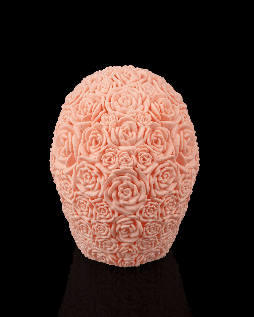 The Floral Skull is a 3D printed skull featuring an intricate flower-textured surface, blending edgy and delicate design. Perfect for home decor, desk displays, or as a unique gift, it adds a bold yet artistic touch to any space with its detailed floral patterns.